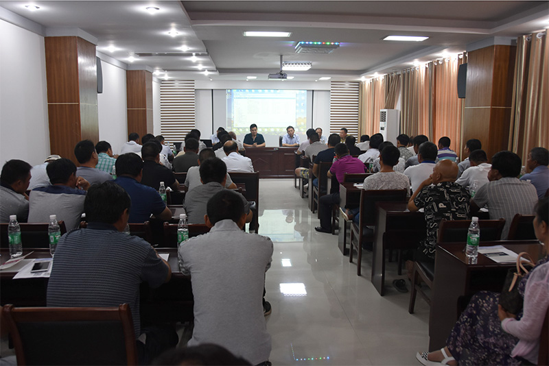 在垦区管理过程中,公司及时提醒养殖户关注天气剧烈变化、上游水质变化、地区鱼病发生等情况,同时要求垦区驻点饲料和鱼药企业技术人员积极配合片区管理人员,及时深入片区做好鱼病的防控工作。 8月上旬,海北公司特邀南京福润德动物药业有限公司派出技术服务小组,由专家带队来垦区进行实地指导。服务小组携设备和技术直达塘口,现场分析水质,调研鱼病情况,与养殖户交流,提供治疗方案,受到垦区养殖户一致好评。8月19日,公司又与江苏华威农牧发展有限公司协作举办了水产养殖实践交流会,特邀了中国农业科学院饲料研究所周志刚博士,上海海洋大学高谦博士为垦区广大养殖户专题介绍鱼病防控的新思路、新技术,并现场剖析养殖户遇到的困难,解答养殖户关心的问题。垦区 80多家养殖户参会,取得了非常好的反响。