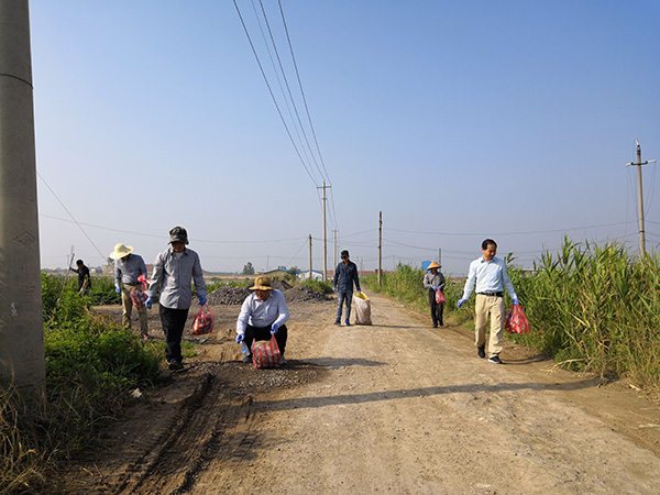 随后,志愿者服务队按既定路线从公司出发,沿中心路由南至北依次路过东区一排、二排、三排,全程约3km。志愿者沿路捡拾白色垃圾、清理路面杂物,并向养殖户发放《致公司水产养殖户的一封信》。